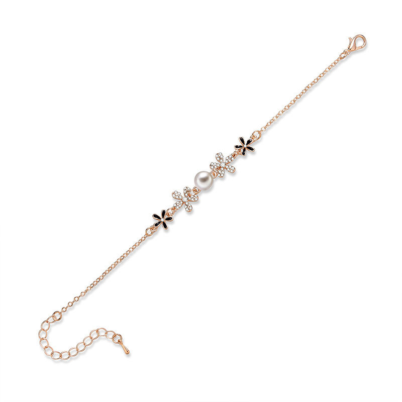 Tortoise Shell Monogram Gold Chain Link Bracelet with Pearl Charm